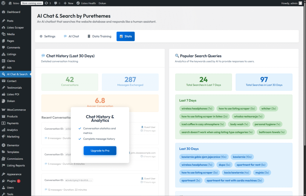 - Navigate to AI Chat & Search in your WordPress sidebar.