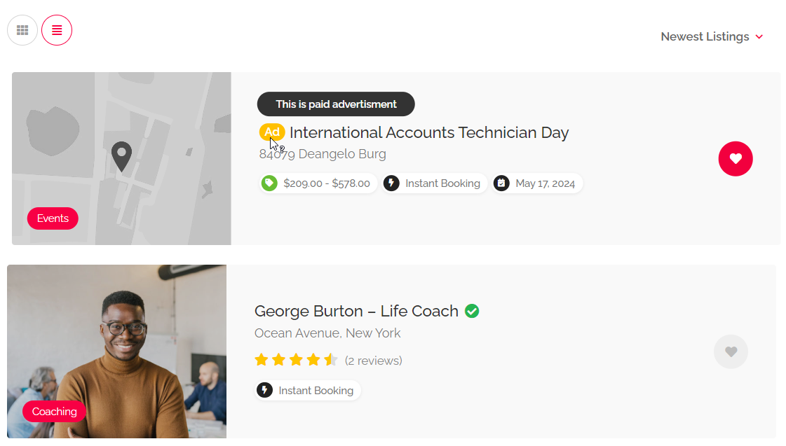 - Sidebar (you need to add Listeo Ads widget in Appearance > Widgets to the sidebar where you want to display ads)