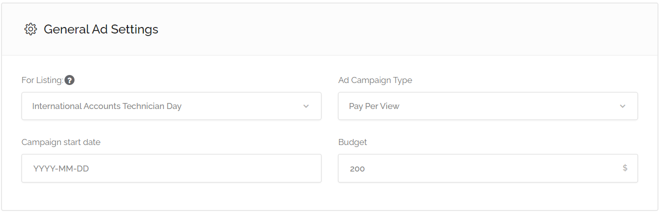 Optionally, set a Start Date for the campaign. If not set, the campaign will start as soon as the ad order is paid for and marked as Completed.