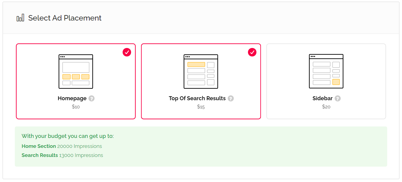 The Ad Manager allows users to pay for prominent placement of their listings on your homepage, top of search results, or sidebar. They can set their desired budget and target specific categories.