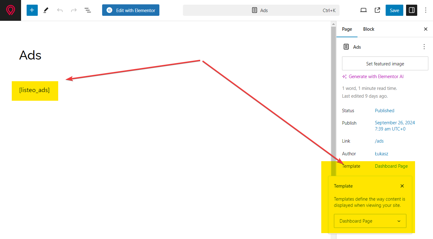 In Listeo Core → Pages, set the Ad Campaigns Manage Page. This page must contain the[listeo_ads]