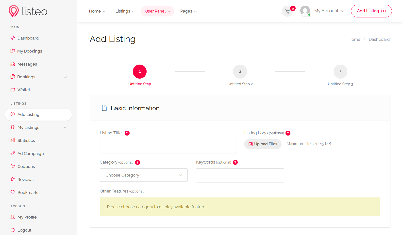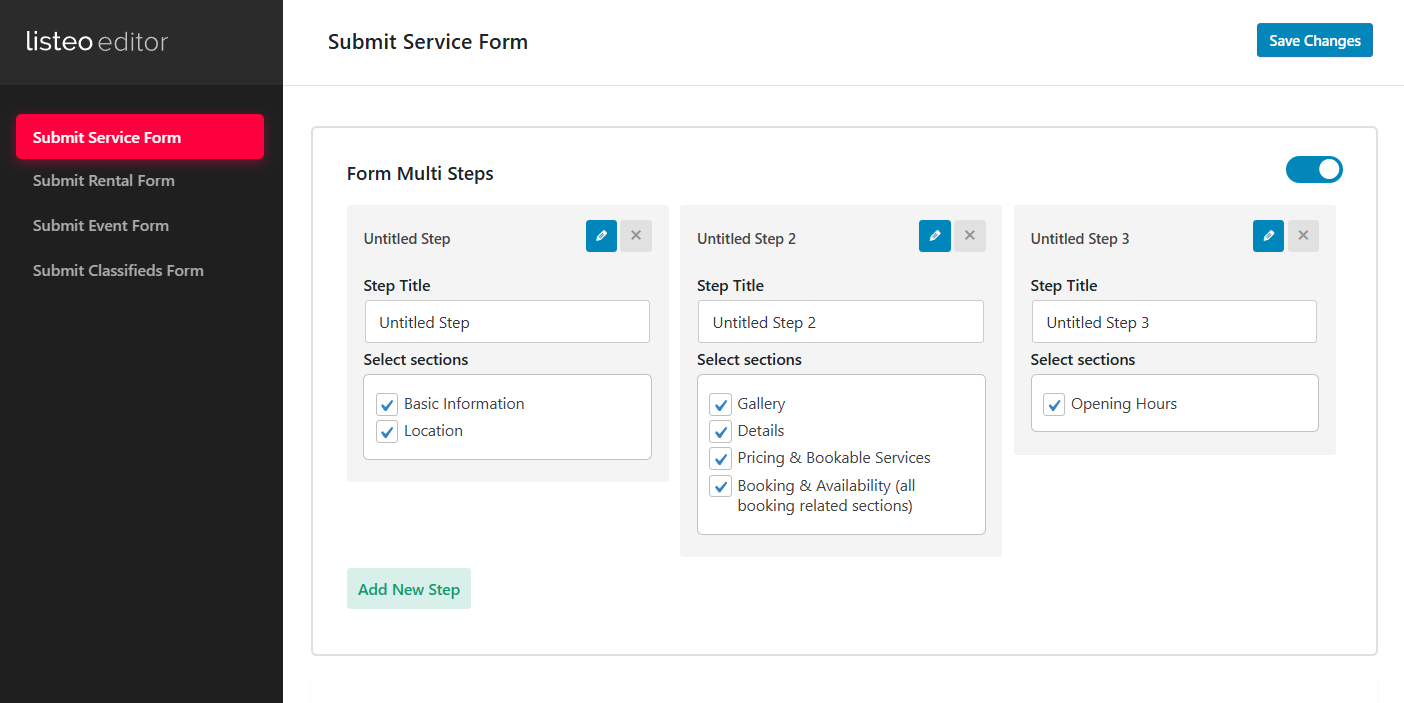 Listeo editor features also multi-step form which prevents overwhelming users with too many fields at once.
