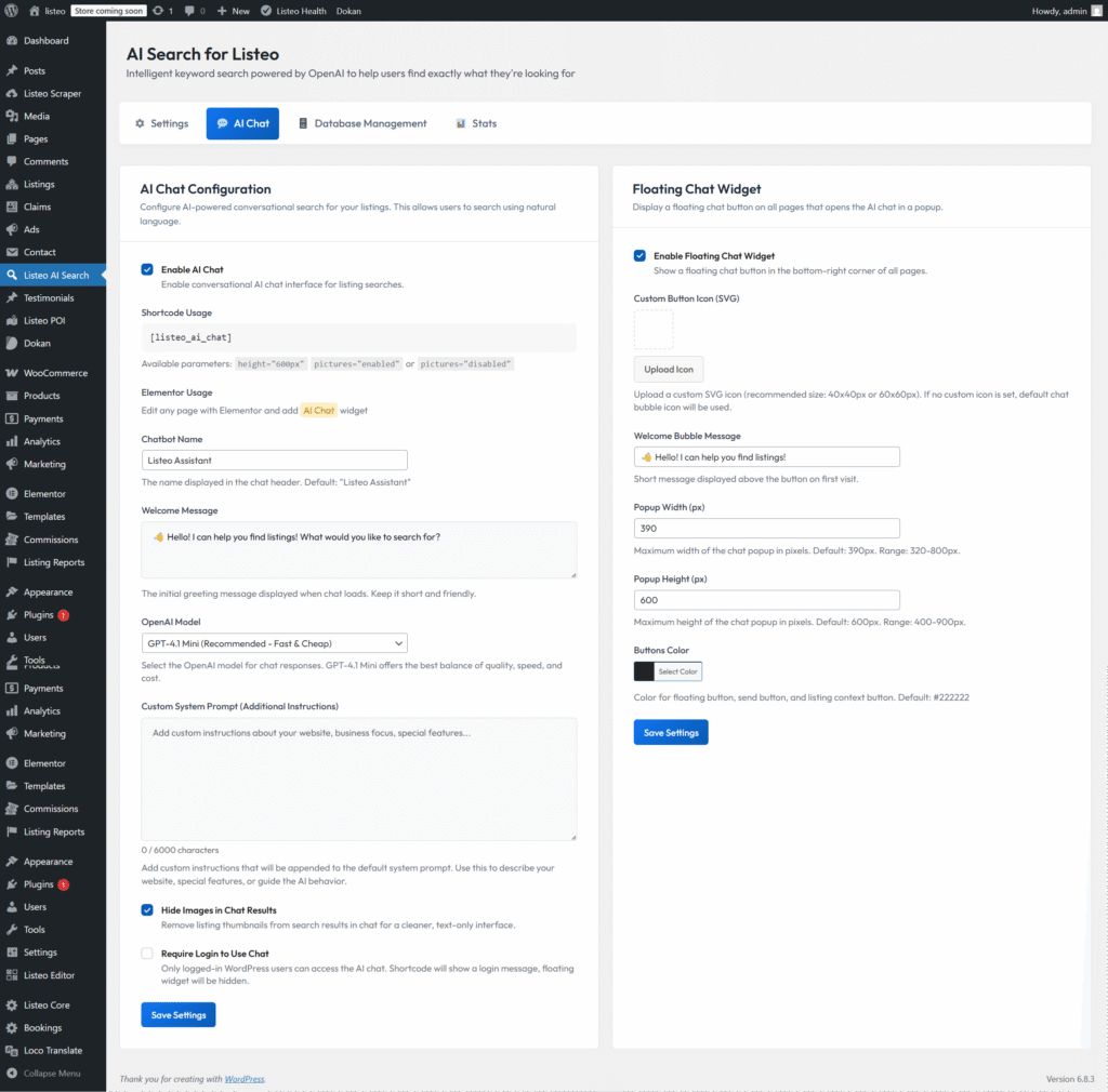 Once you created vector database simply navigate to AI Chat tab in plugin settings and configure it to your needs.