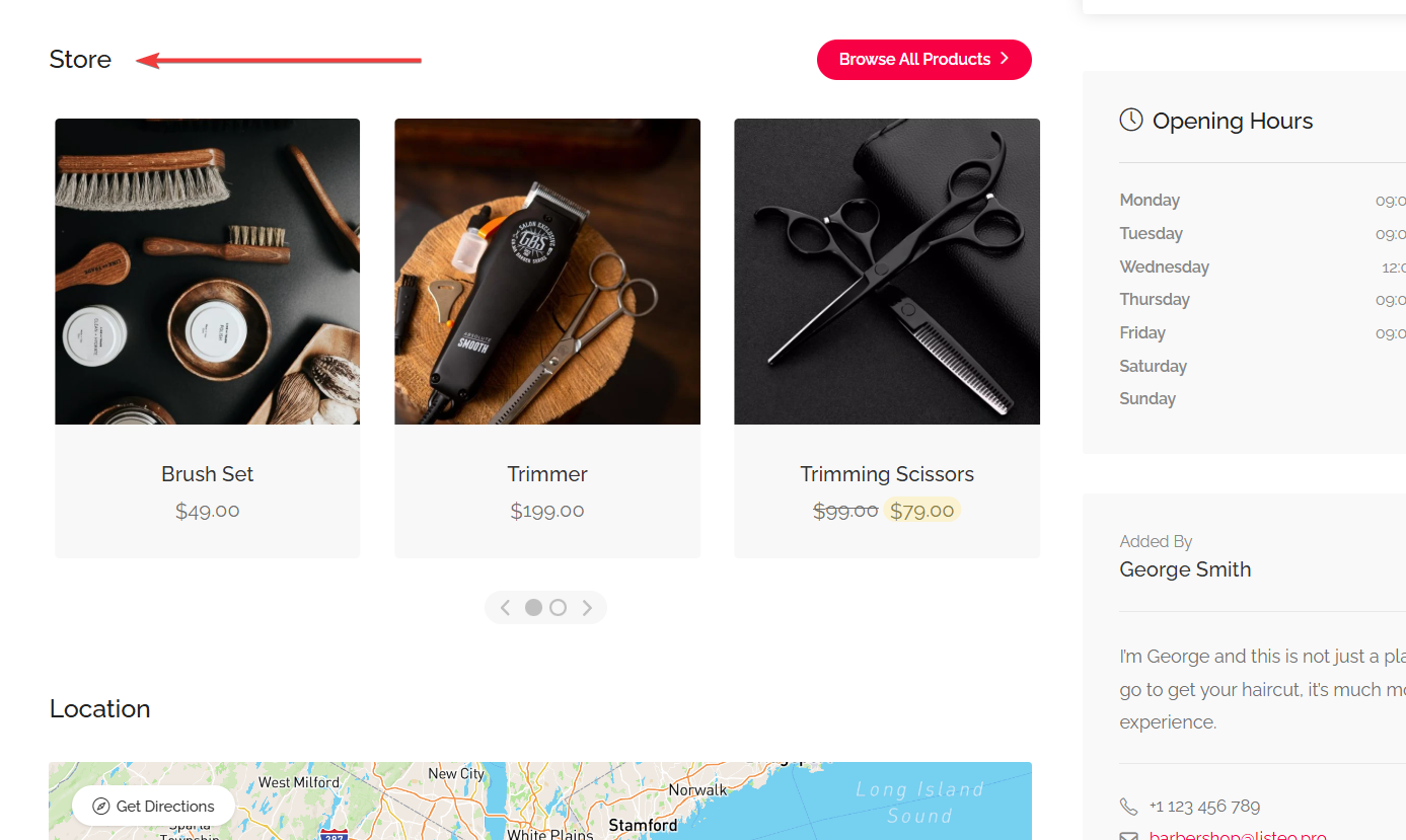 For example, in this listing: https://listeo.pro/listing/georges-barber-shop/ the owner not only advertises their local business but can also run a store with barber accessories: https://listeo.pro/store/barbershop/