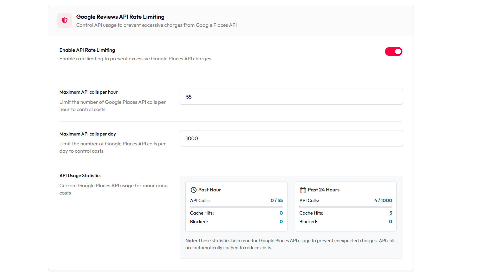 It is highly recommended to enable gateway for Google Places API to control API usage to prevent excessive charges from Google. Listeo Core → Single Listing → Google Reviews API Rate Limiting