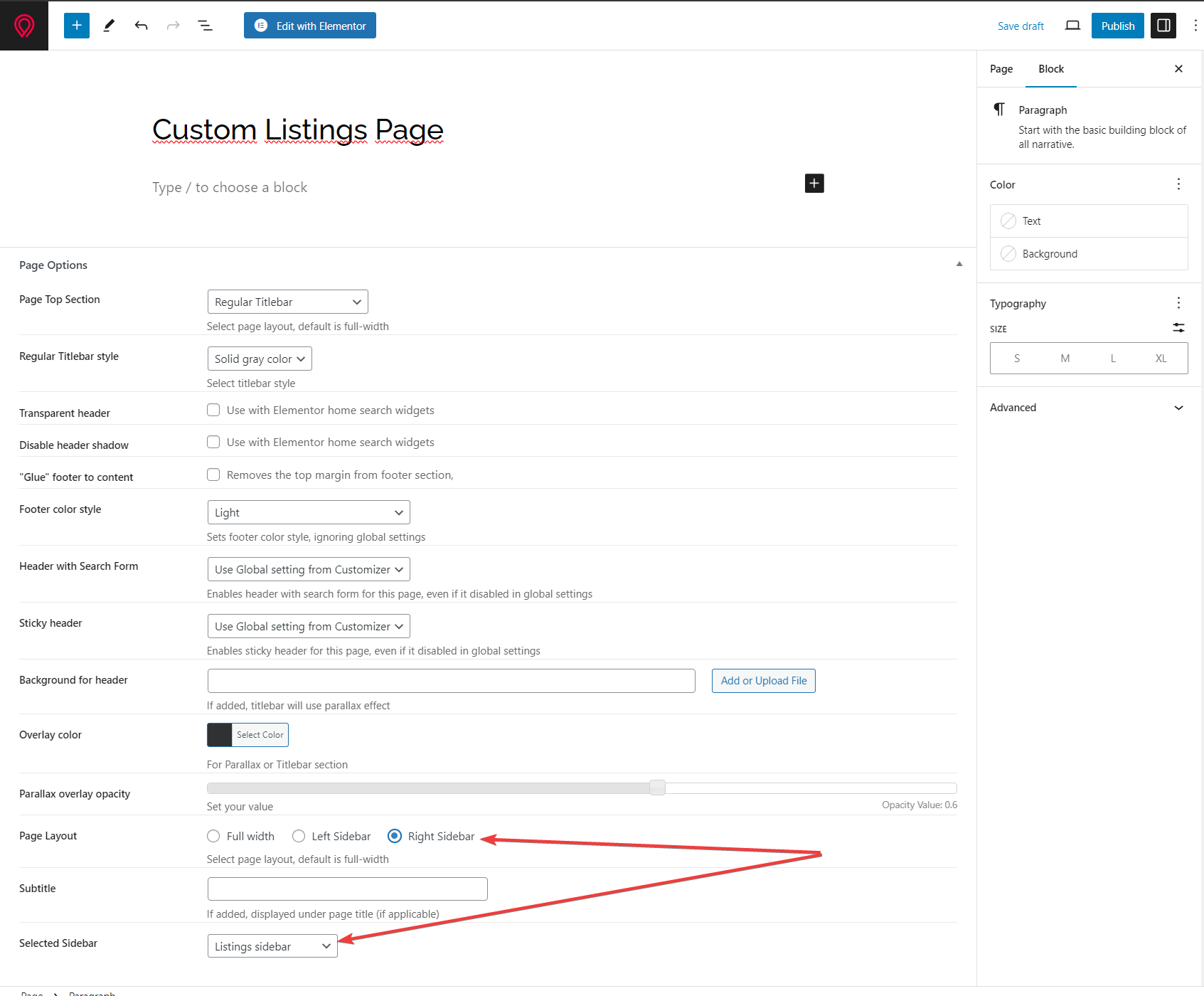 If you would like to creage custom page with specific category listings or type here’s quick guide. Start with creating new page and selecting page layout and sidebar.