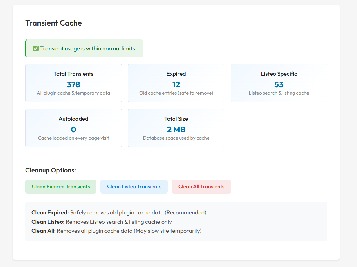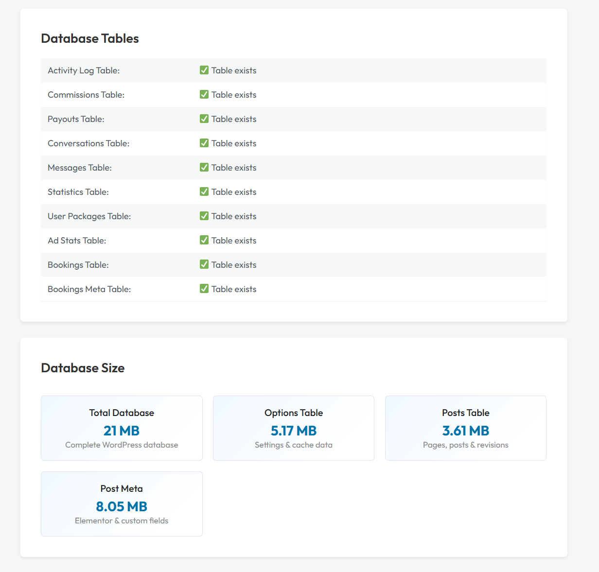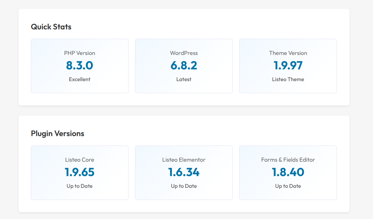 The Listeo Site Health (click Listeo Health in admin toolbar) page provides a diagnostic dashboard for monitoring your WordPress site’s technical status and resolving issues quickly.