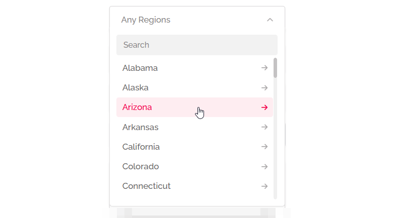 Regions → 5 Cities: This is the default. It gives you states with their 5 biggest cities nested underneath.