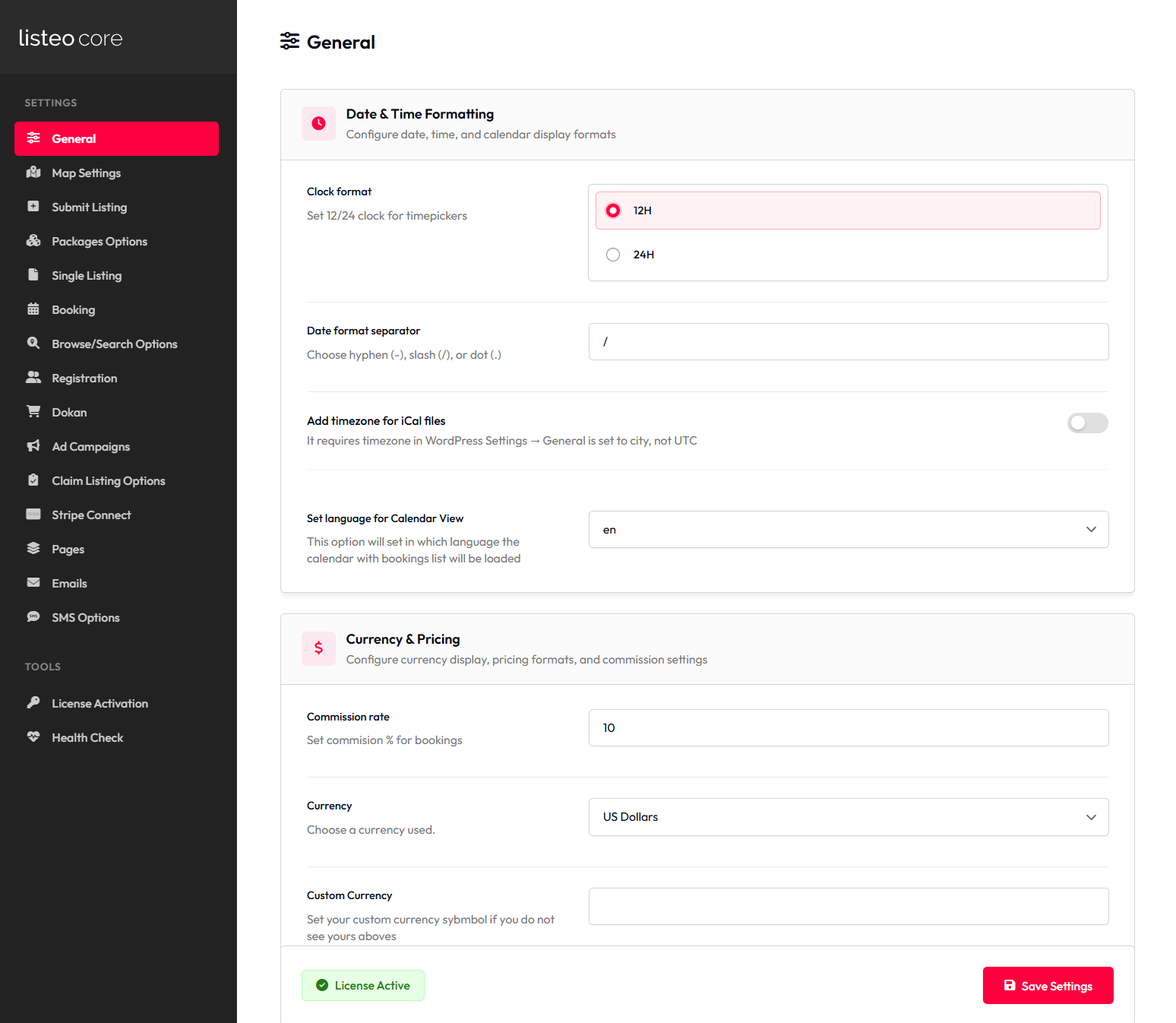 “Listeo Core” is the core plugin that powers listings and booking functionalities. You’ll find all the settings in Dashboard → Listeo Core.
