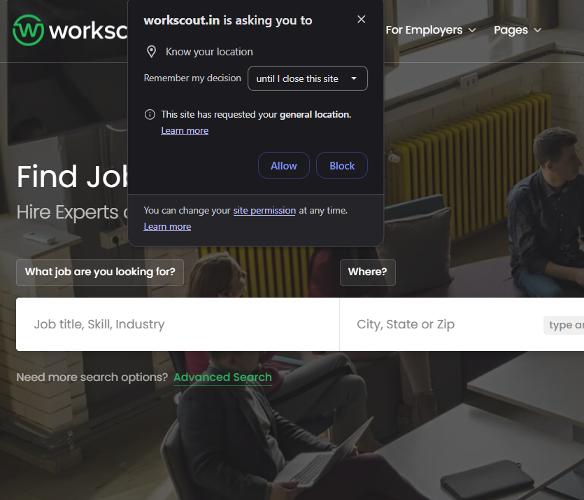 Keep in mind that due to privacy user will see a pop-up (check screenshot below) with browser permission request asking the user if they want to share their location with your website.