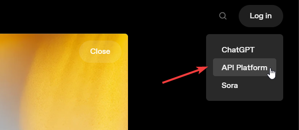 โ Click the “Log In” button (top right corner) and select API Platform.