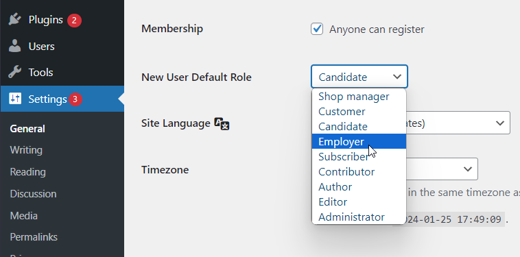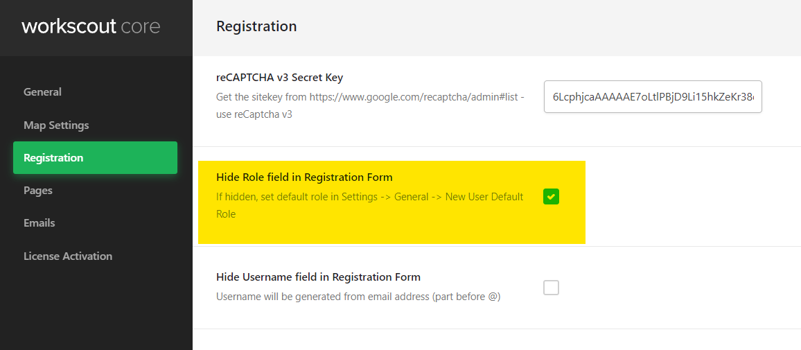 If you’d like to disable one of the mentioned user role head over to WorkScout Core → Registration → Hide role field in Registration field